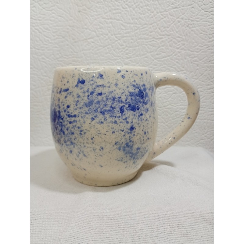 Taza decorada con un salpicado azul